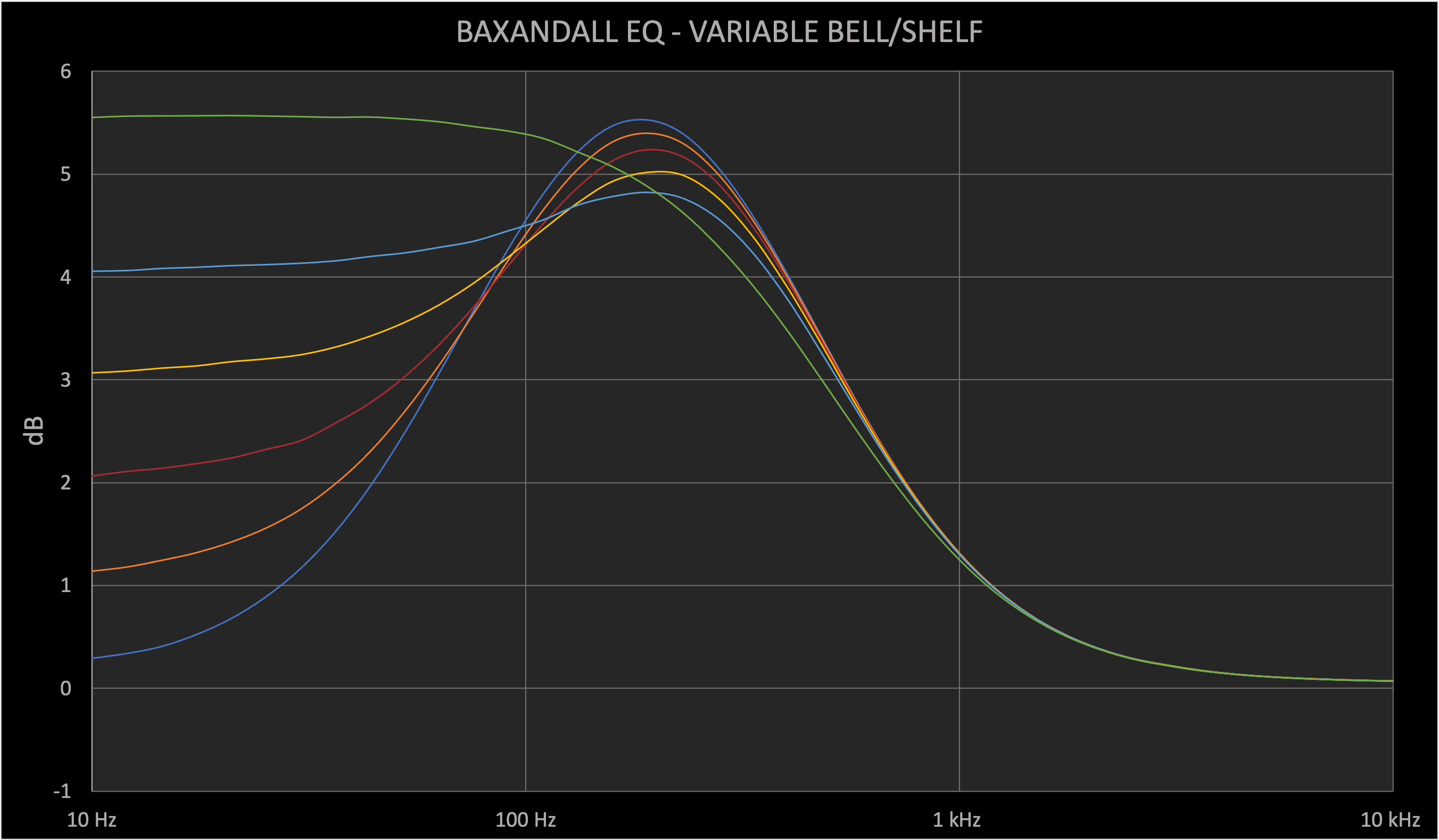I have also developed a unique variable bell/shelf control that gives you the intermediate steps between bell and shelf mode (see the graph below).